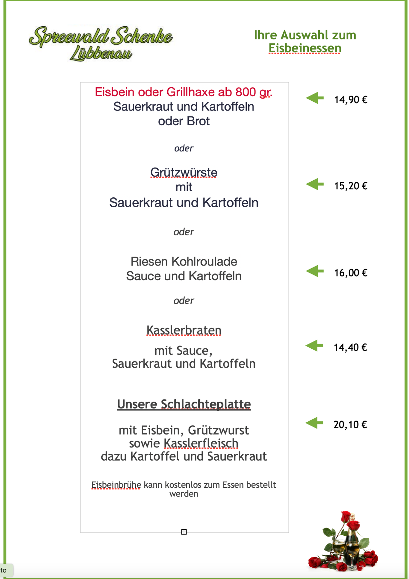 Unsere Eisbeinkarte ab 05.02.2026